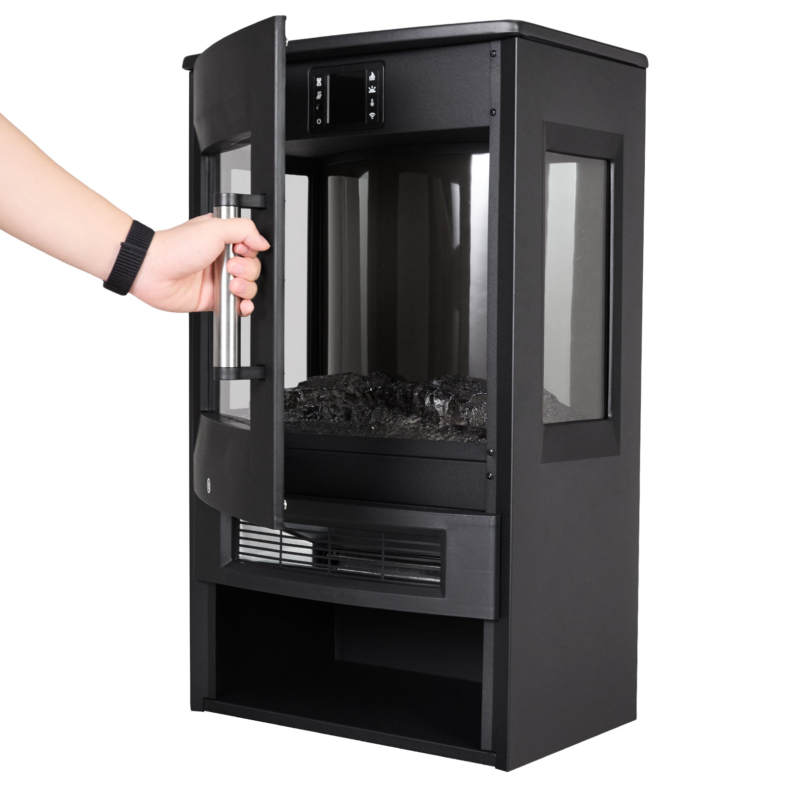 This sleek and modern 3-sided freestanding electric fireplace combines aesthetics and functionality. Featuring a black iron exterior, it adds elegance to any room while offering efficient heating with adjustable flame effects. With a powerful 900/1800W heating system, customizable LED backgrounds, and flame speed settings, this fireplace is perfect for creating a cozy ambiance. The WiFi-enabled functionality, controlled via Tuya APP, allows easy operation from anywhere. The remote control adds extra convenience, while the automatic shut-off function provides safety. The 1-8 hours timer and adjustable temperature settings (15-35°C) give you complete control over your comfort.